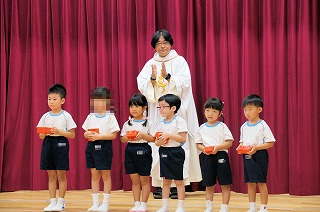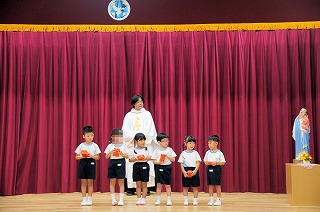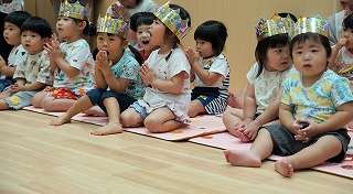 夏生まれのお友だちが沢山です。乳児組のお誕生児は、キラキラの冠をかぶって参加します。
