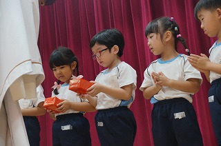 8月の誕生会は、幼児組夏期保育期間中に行いました。