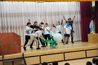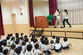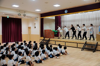 8月のお楽しみは、7月の大きなかぶの劇の幼児組先生バージョンです。