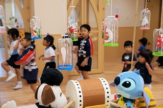 最後は、全園児で盆踊りです。盆踊りは、乳児組のお友だちも一緒に参加します。