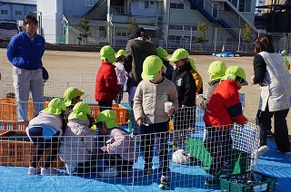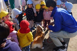 年が明けた6日(火)に年長組のおたのしみ会を行いました。今年は、プチZOOさんに来ていただき動物と関わる中で、命の大切さを学んでもらいたいと企画しました。