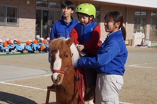 ポニーの乗馬体験も子ども達はとても楽しみしていました。スタッフの方が優しく子ども達にお話をしながらポニーに乗って1周します。