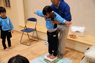 また、生卵の上に乗ったら割れるのか割れないのか!代表のお友達に乗ってもらい、みんなで見守りました。なんと、一つも割れませんでした。